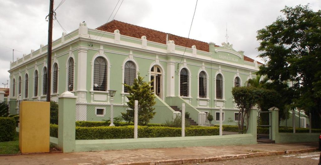A Escola Leônidas Pacheco Ferreira, em Bocaina-SP, foi construída em 1909, com 8 salas. Projeto de José Van Humbeeck.