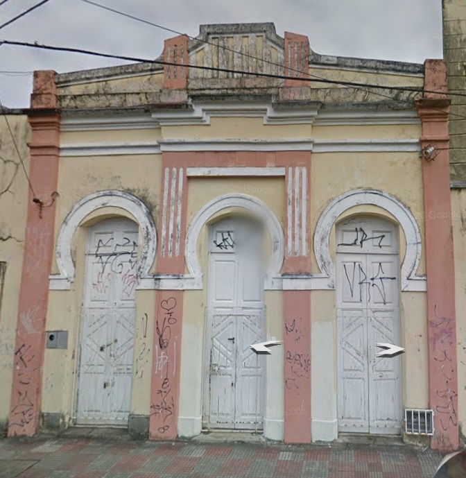 Descrição: A edificação no 176 da Rua Dr. Barata é um exemplar da arquitetura eclética, sedimentada nos primeiros anos do século XX em Natal. Marcada por três portas frontais de entrada, circundadas na parte superior por arcos característicos do estilo Art Nouveau, também possui ranhuras e saliências nas pilastras e platibanda da edificação, de inspiração Art Decó.
