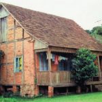 A Casa de Edeltraud Eichendorf, em São Bento do Sul-SC, possui mais de cem anos. Mescla enxaimel e alvenaria autoportante de tijolos aparentes.